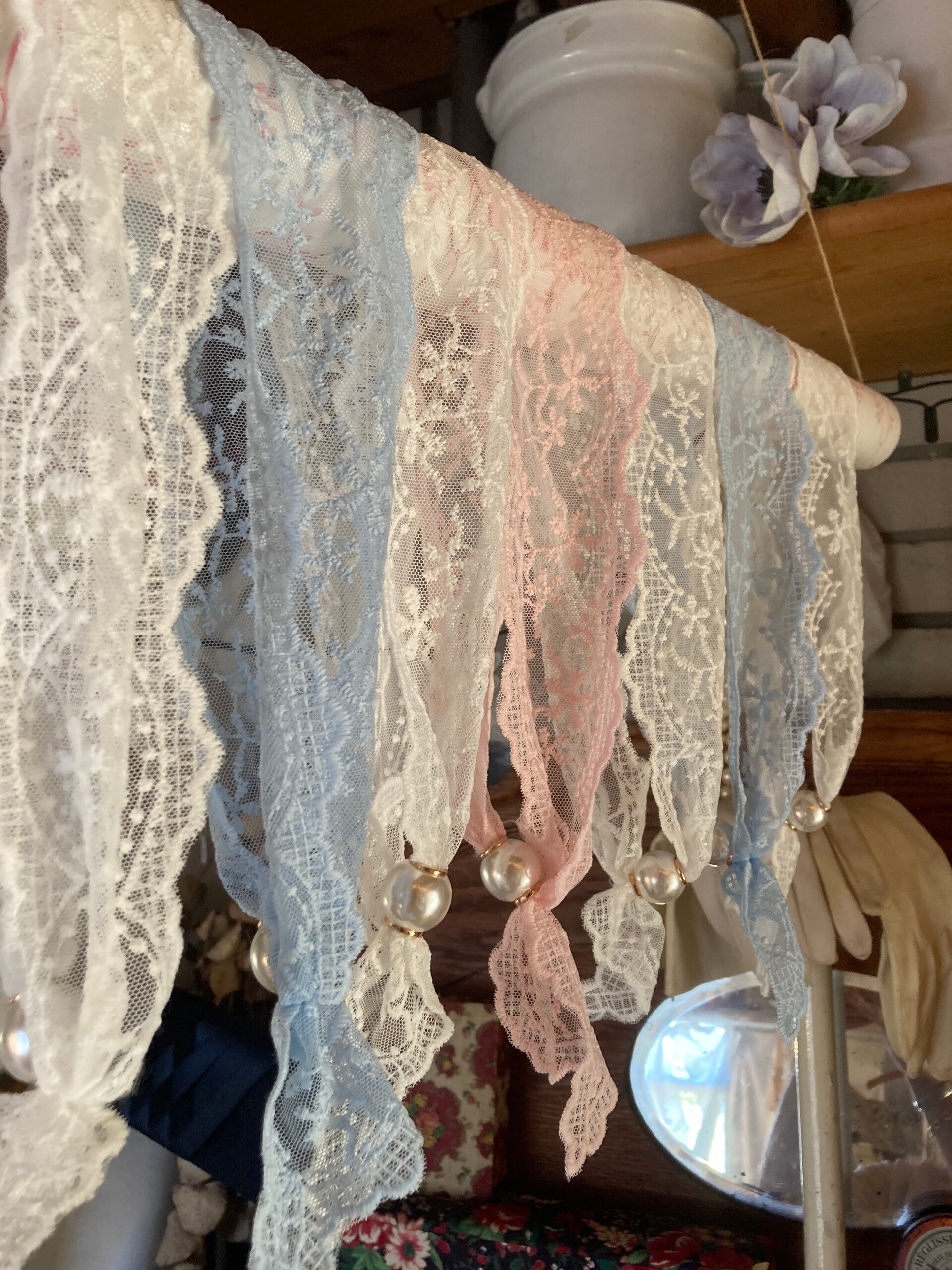Kanten ketting sjaaltjes met parel wit